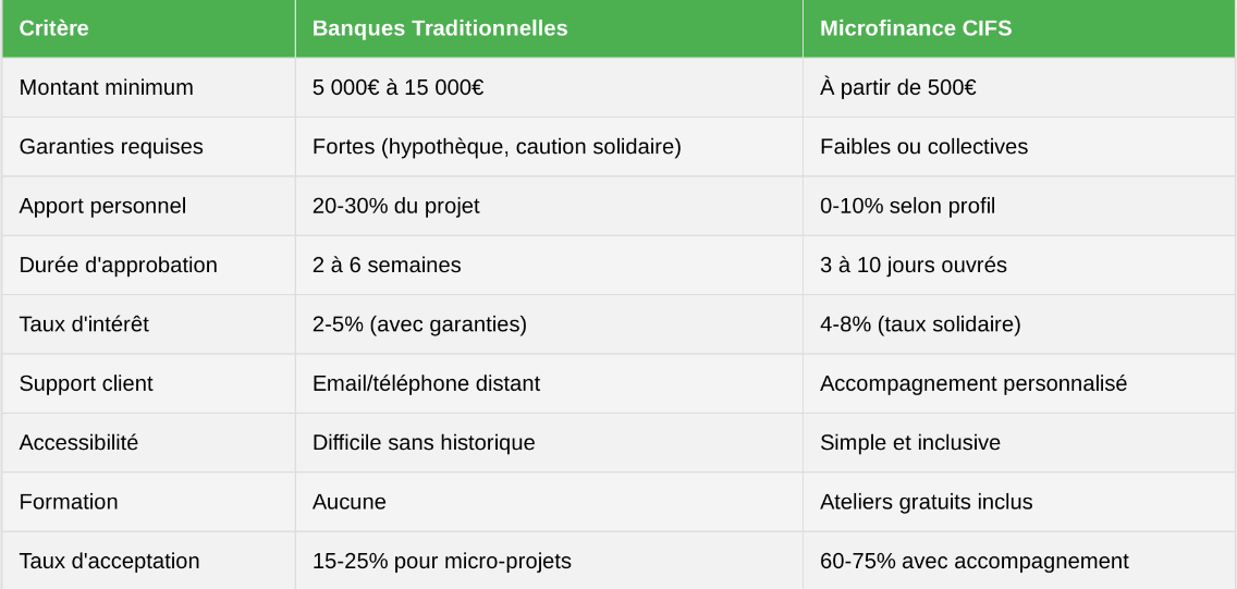 Le Tableau Comparatif : Banques vs Microfinance CIFS